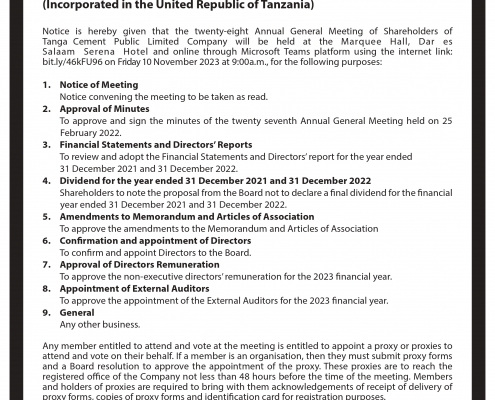 TANZANIA: TANZANIA Breweries Public Limited Company (TBL) shareholders have ratified a dividend of 537/- per share for the period ended December last year, at an Annual General Meeting (AGM). The dividend approved is equivalent to 158.4bn/-, which is an increase of 85 per cent over the prior year. TBL Chairman Mr Leonard Mususa, said despite the […]